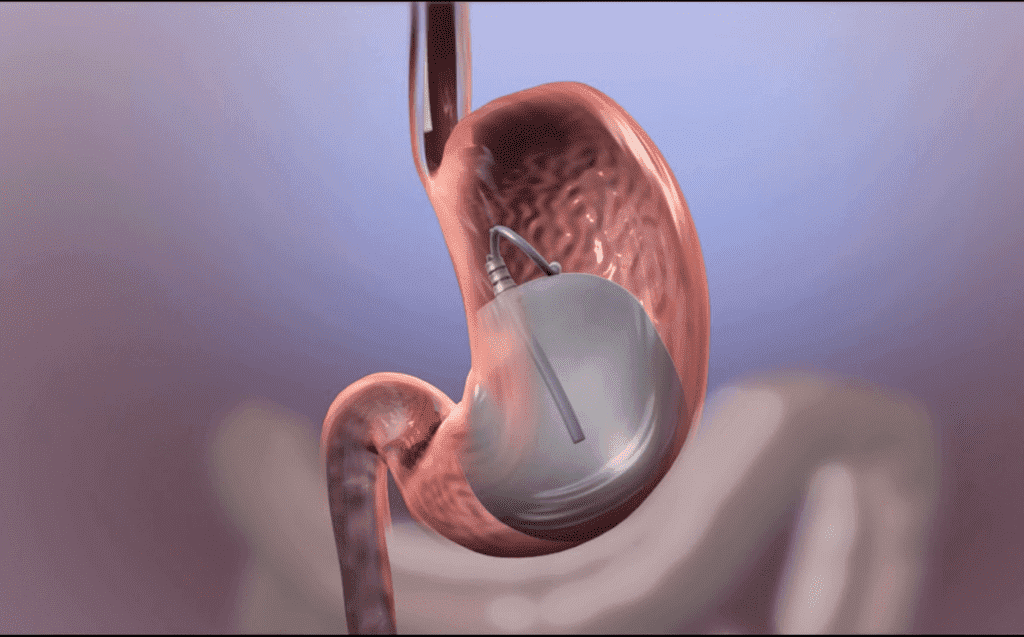 - تُبتلع متصلة بقسطرة رفيعة تُستخدم لملئها بغاز النيتروجين داخل المعدة. يمكن إجراء تركيب حتى 3 كبسولات على مراحل.